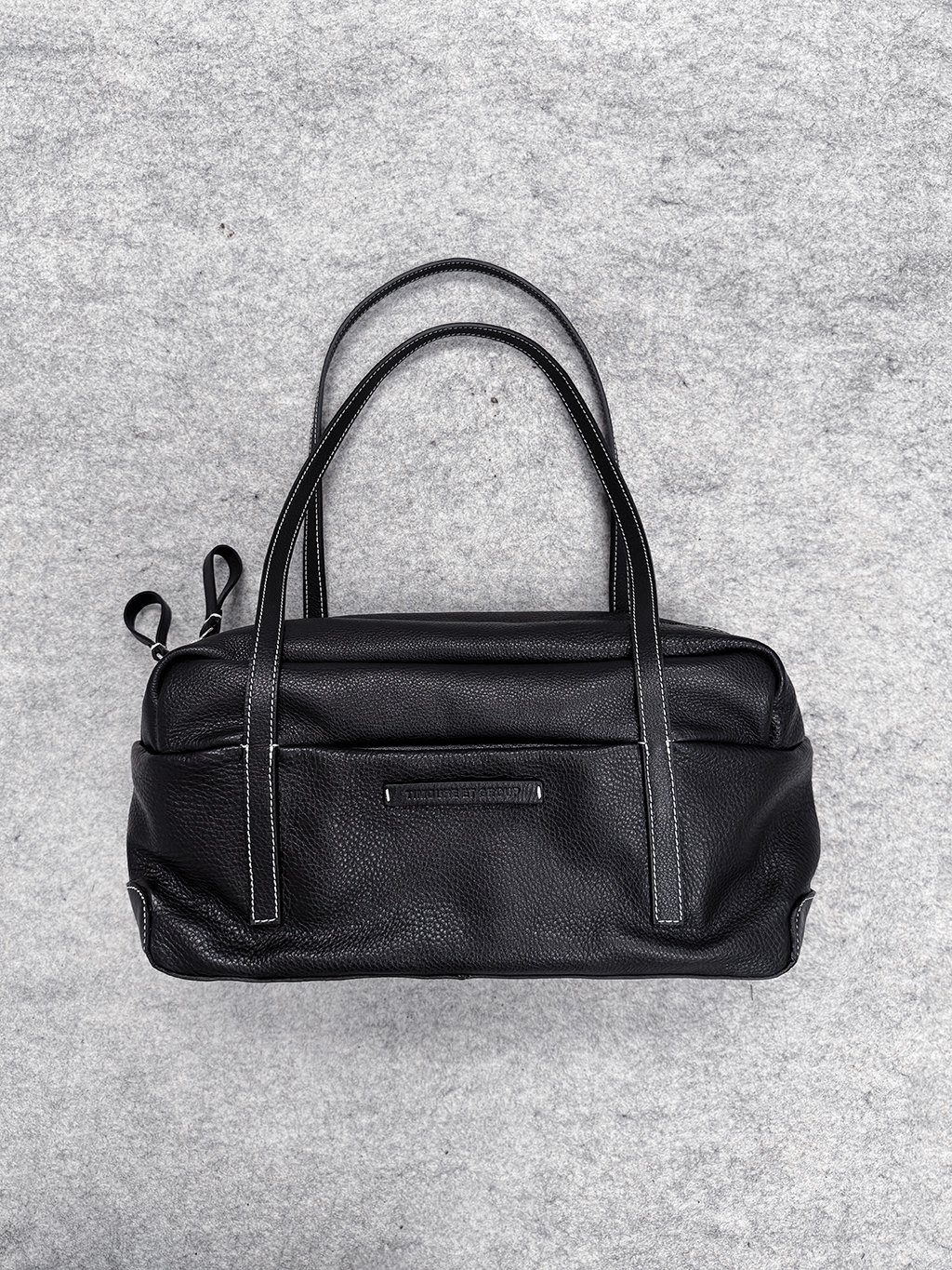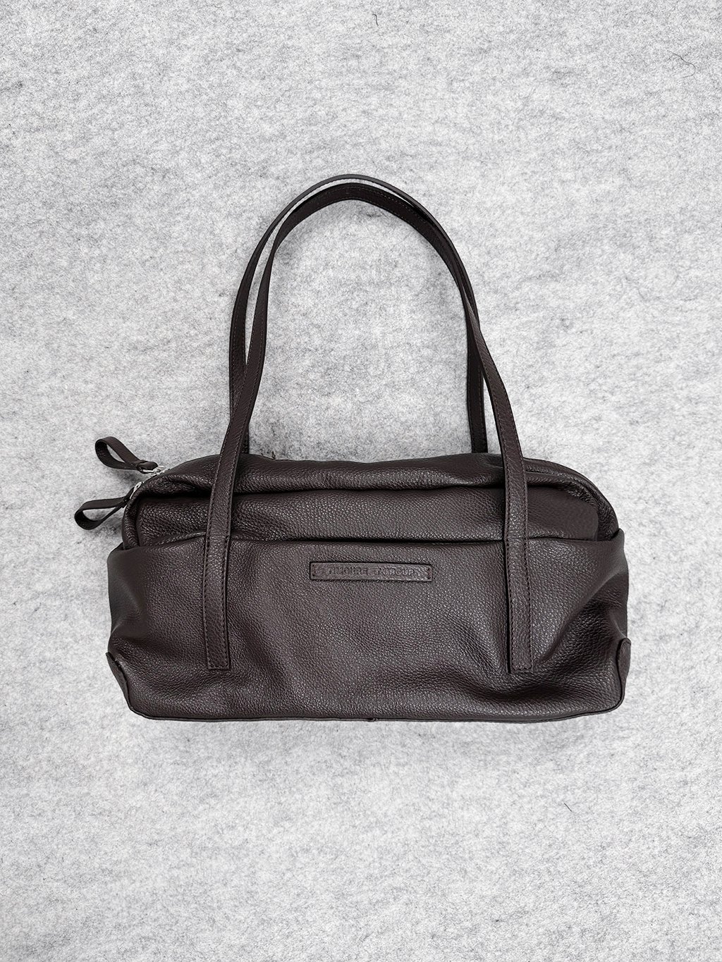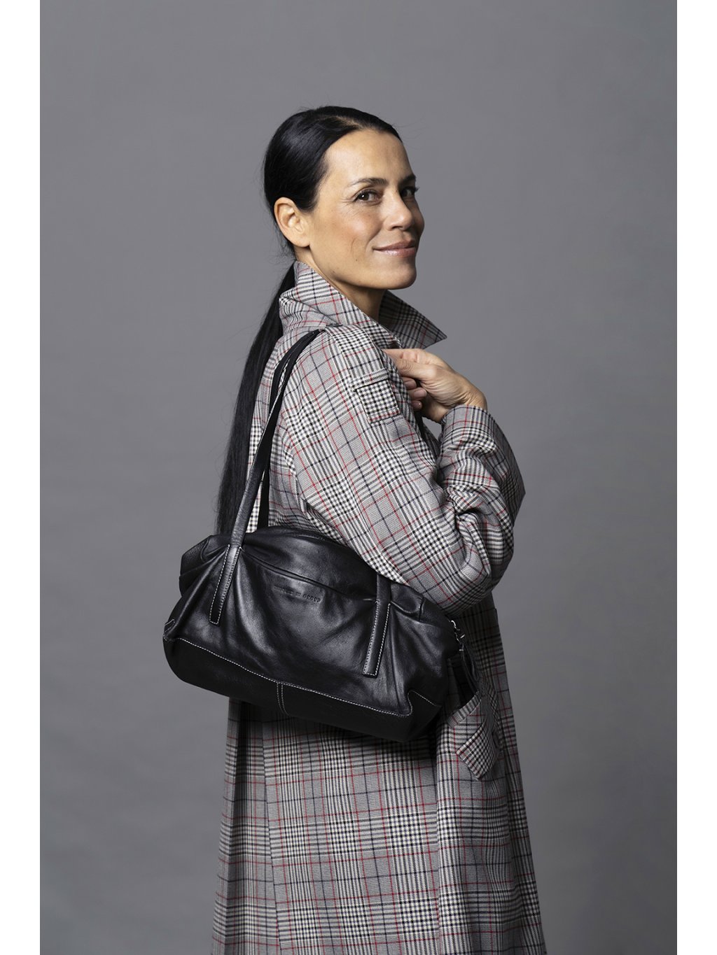 Kožená kabelka přes rameno je inspirovaná vintage bowlingovými taškami.