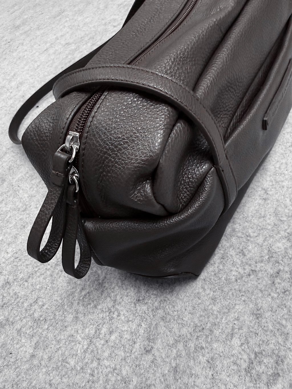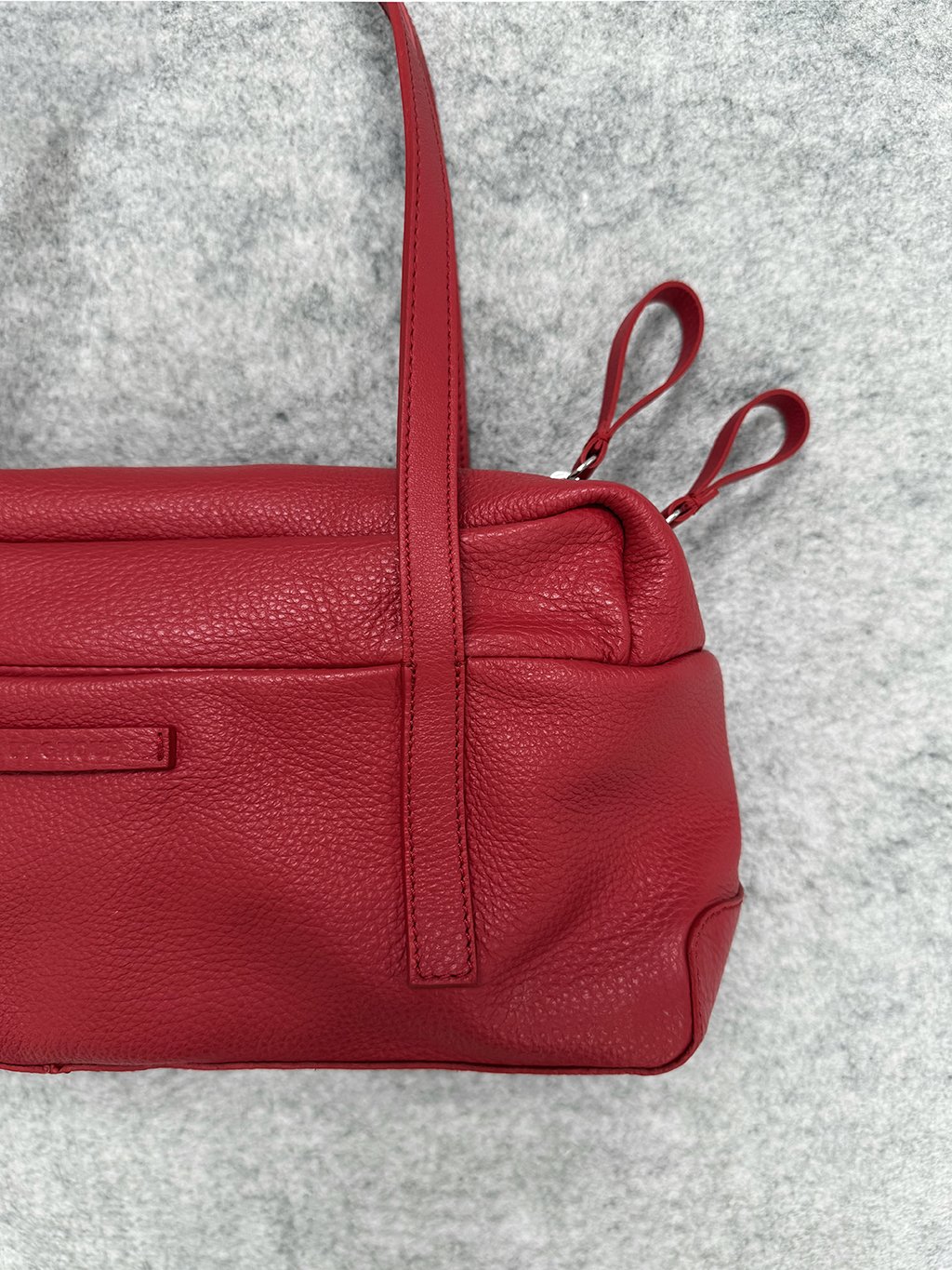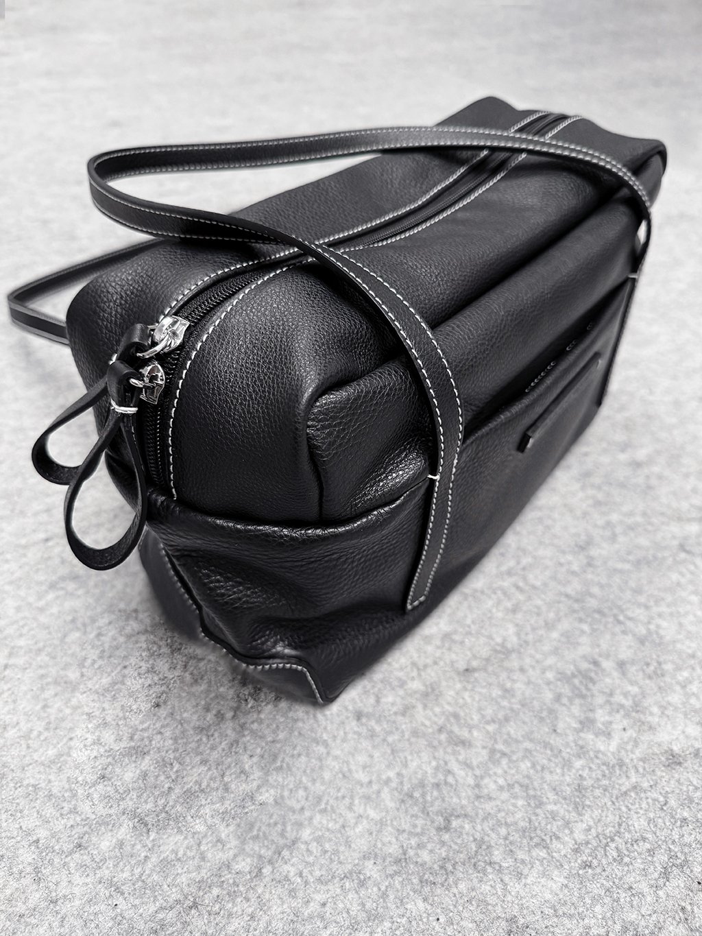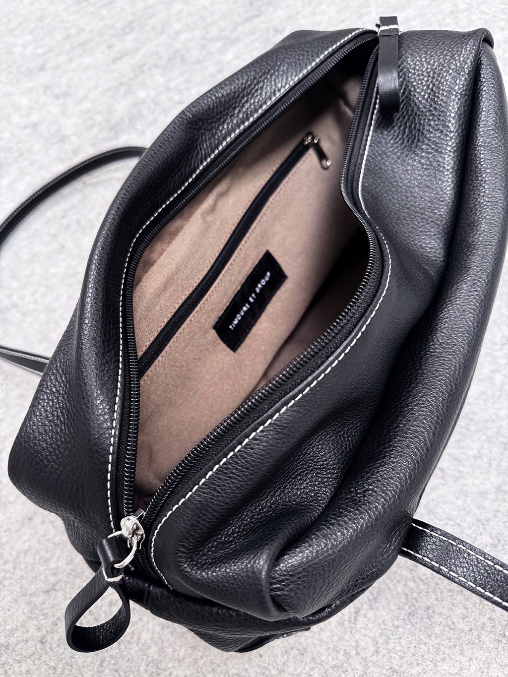 Má ploché zpevněné dno, tenké popruhy plynule přecházejí do dílů kabelky a na přední straně ohraničují vnější kapsičku.