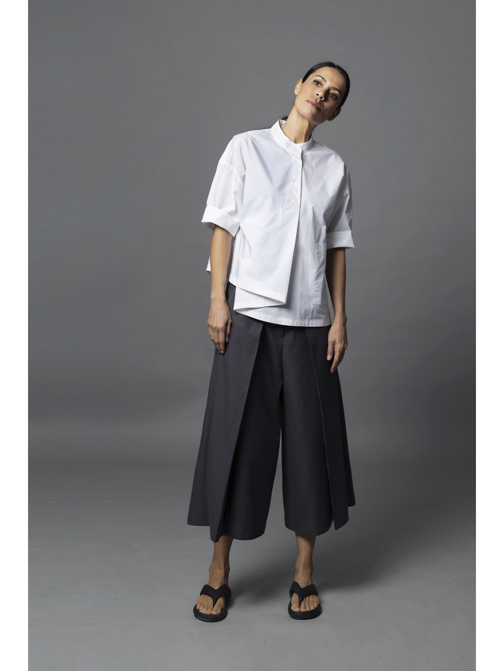 Stylová pohodlná nezbytnost pro jarní sezonu - kalhotová sukně s hlubokými sklady na předním dílu.