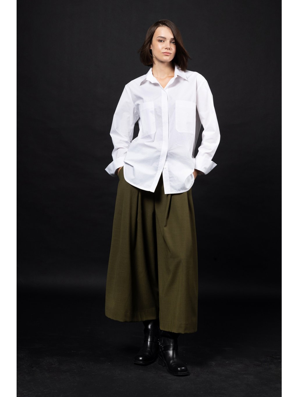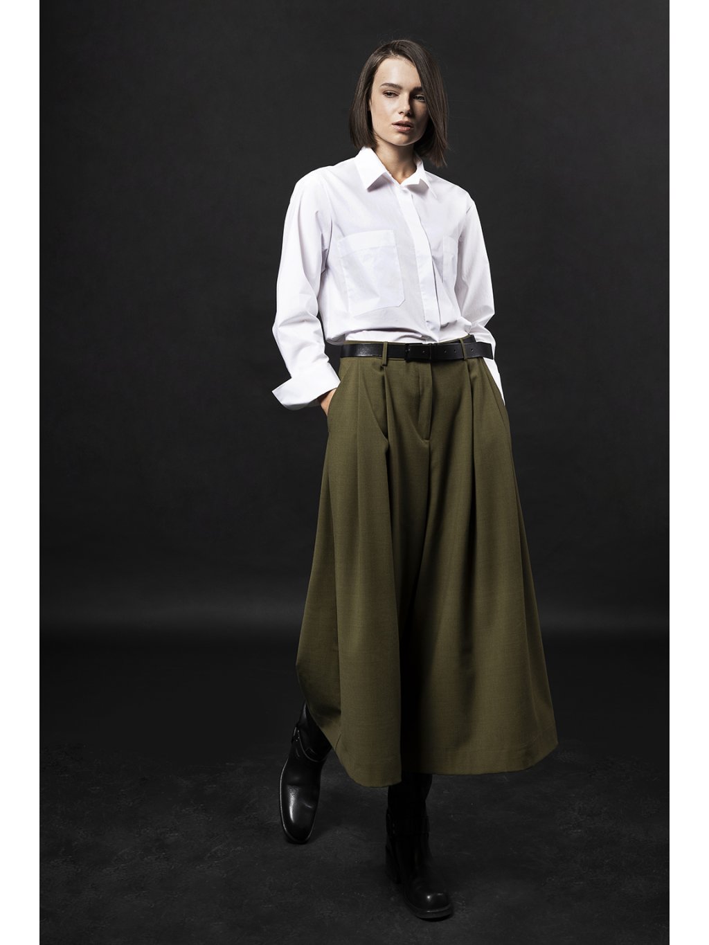 Skvělá nezbytnost pro další podzimní sezonu - kalhotová sukně s hlubokými sklady na předním dílu.