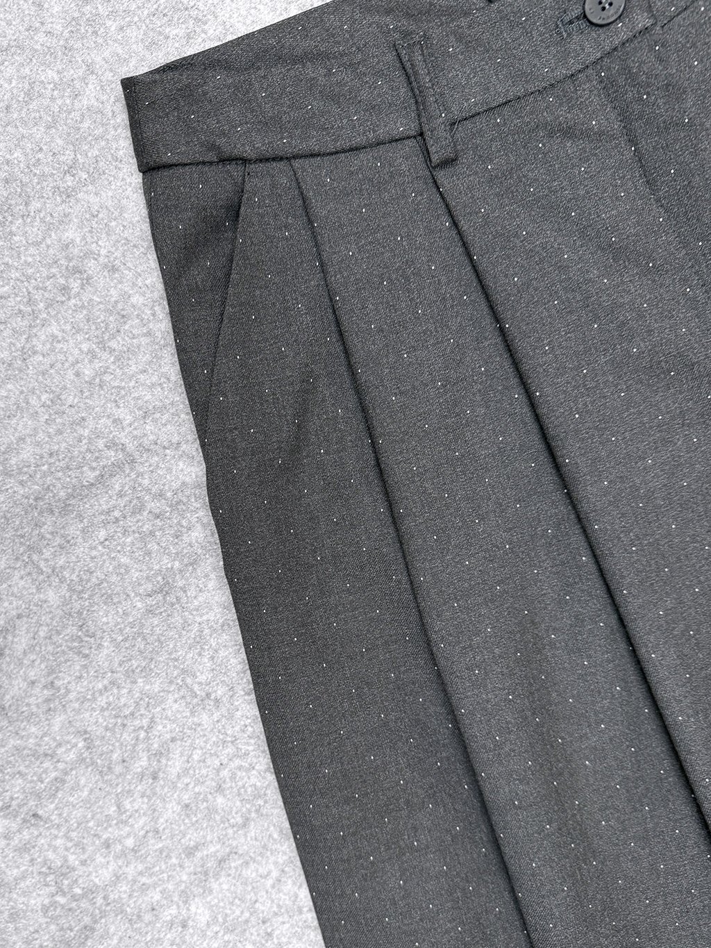 Složení:olivová zelená 54% polyester, 44% vlna, 2% elastan; antracit 63% polyester, 35% viskóza, 2% elastan ; šedý melír 53% polyester, 44% viskóza, 3% elastan; černá s proužkem 63% polyester, 35% viskóza, 2% elastan