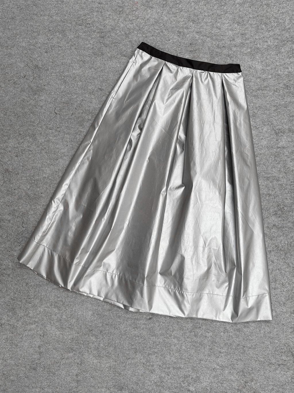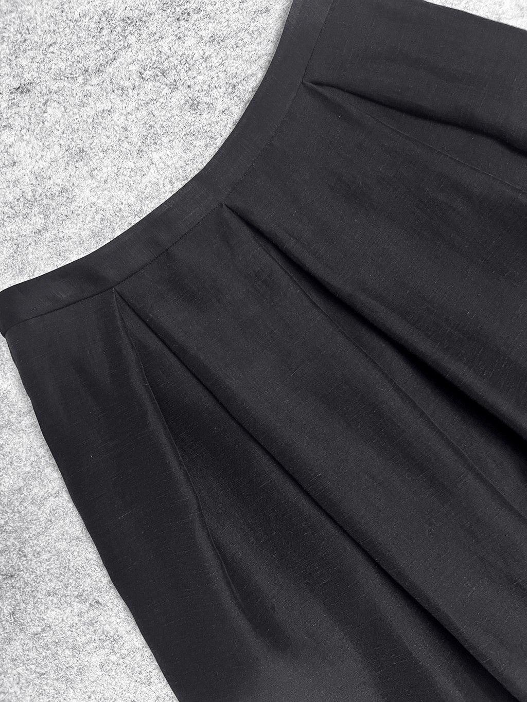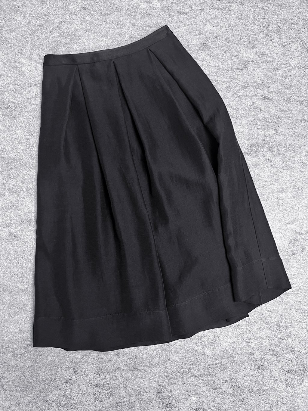 Sukně se sklady bez podšívky má kapsy ve stranním švu a je z několika mimořádných materiálů.