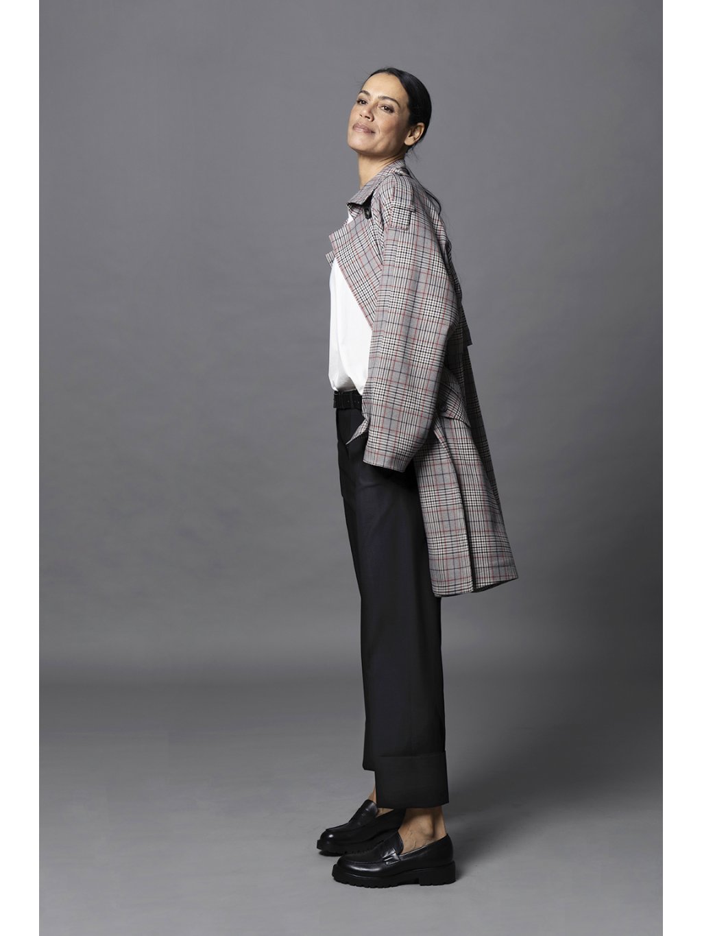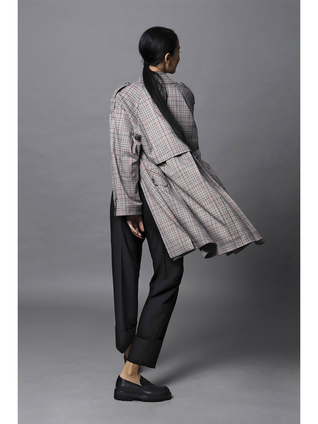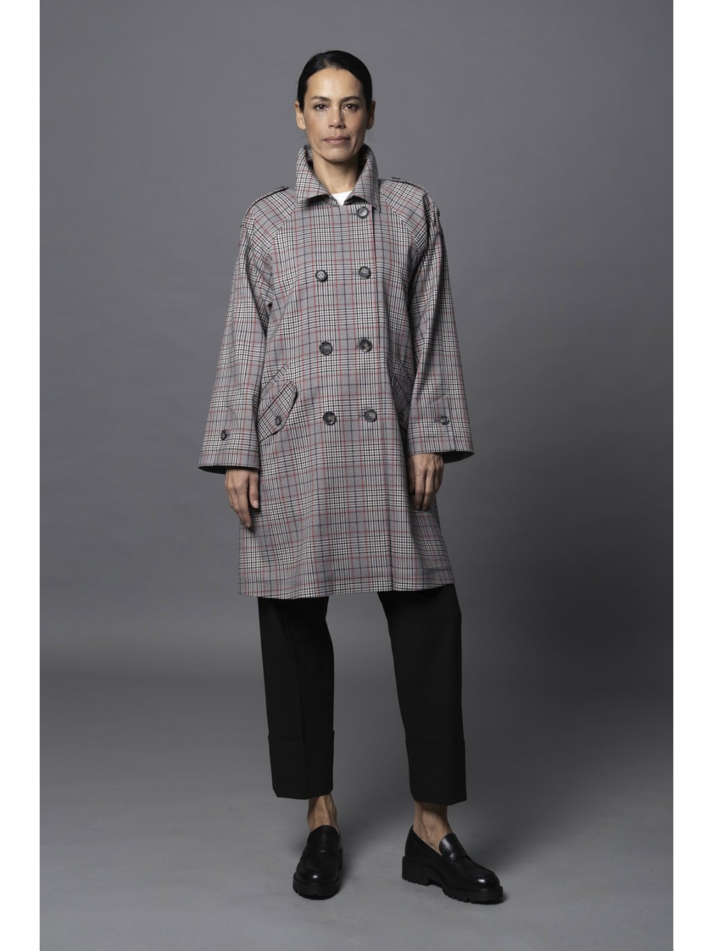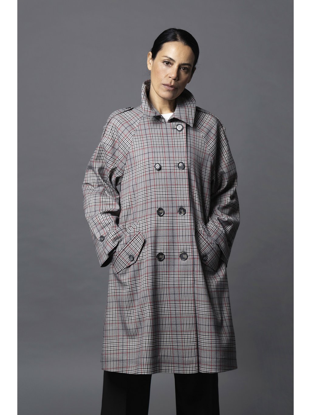 Tříčtvrteční dvouřadový baloňák raglánového střihu má protizáhyb na zadním dílu a hluboké sedlo.