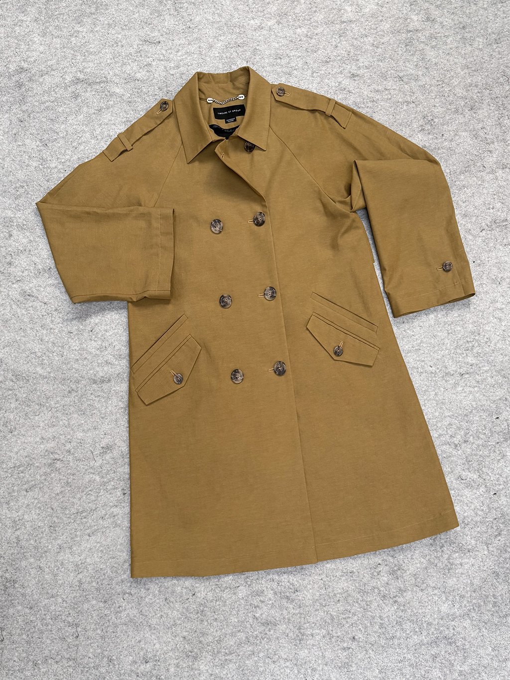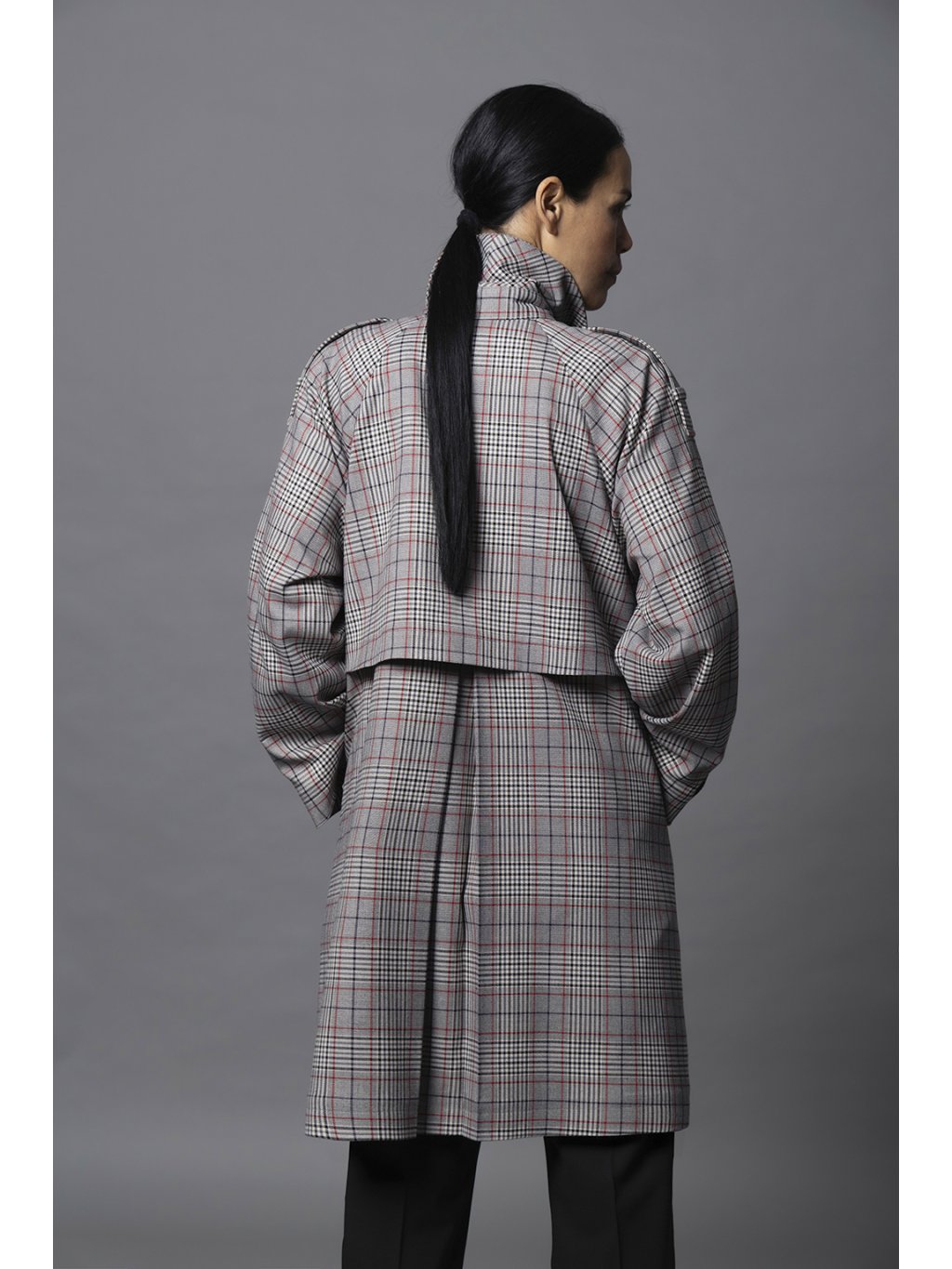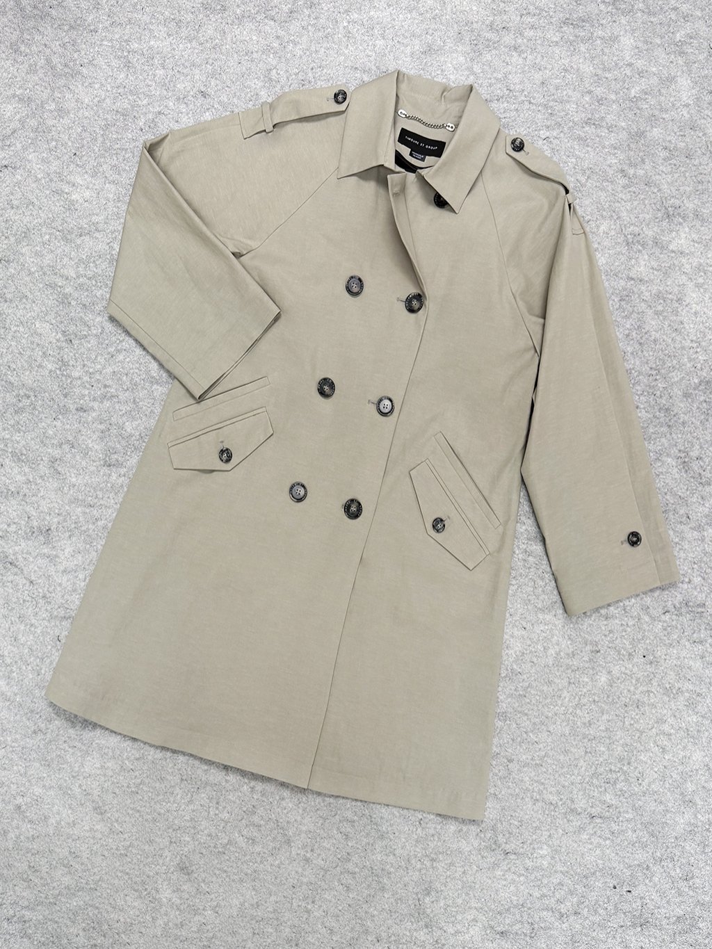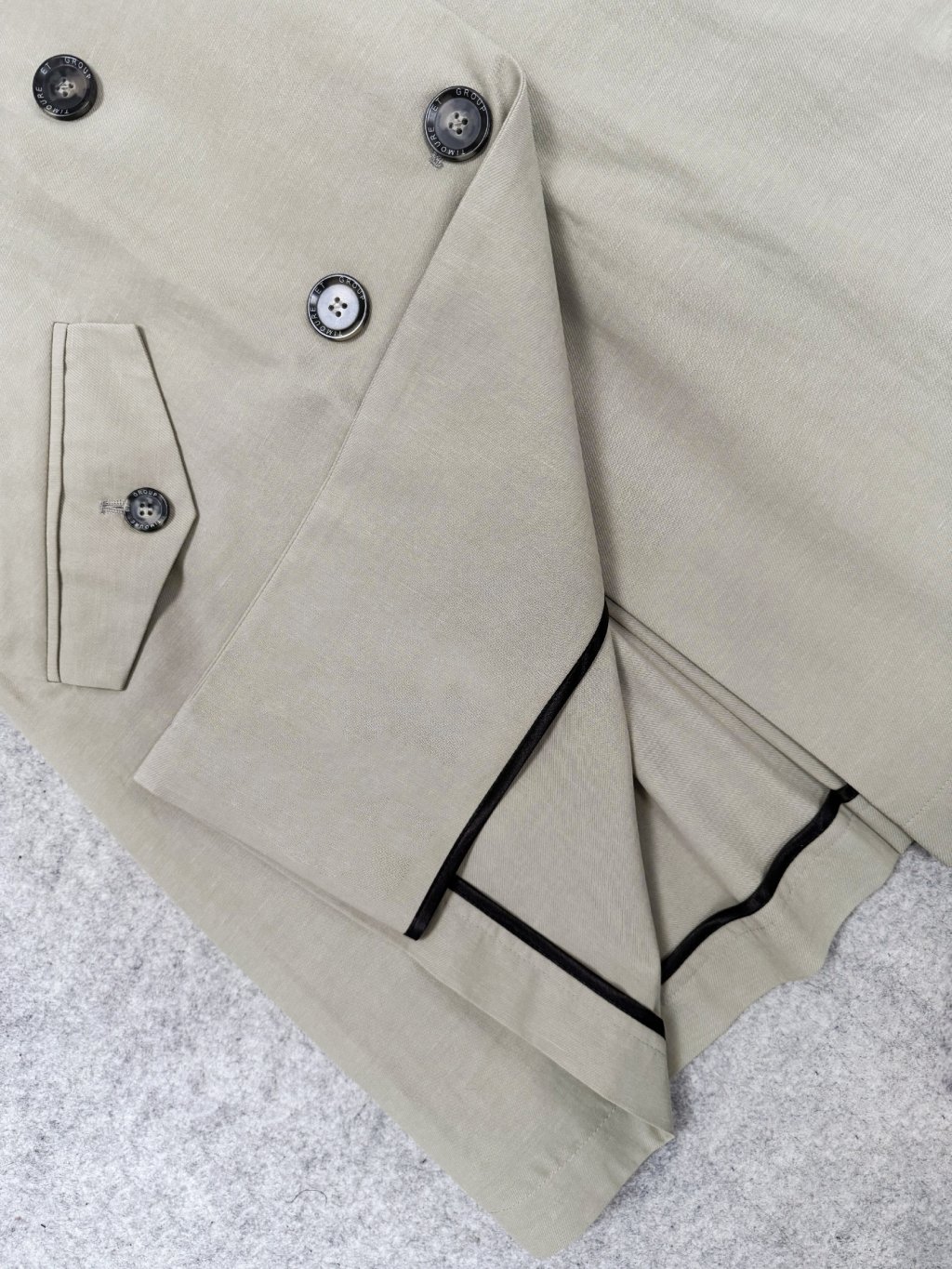 Tříčtvrteční dvouřadový baloňák raglánového střihu má protizáhyb na zadním dílu a hluboké sedlo.