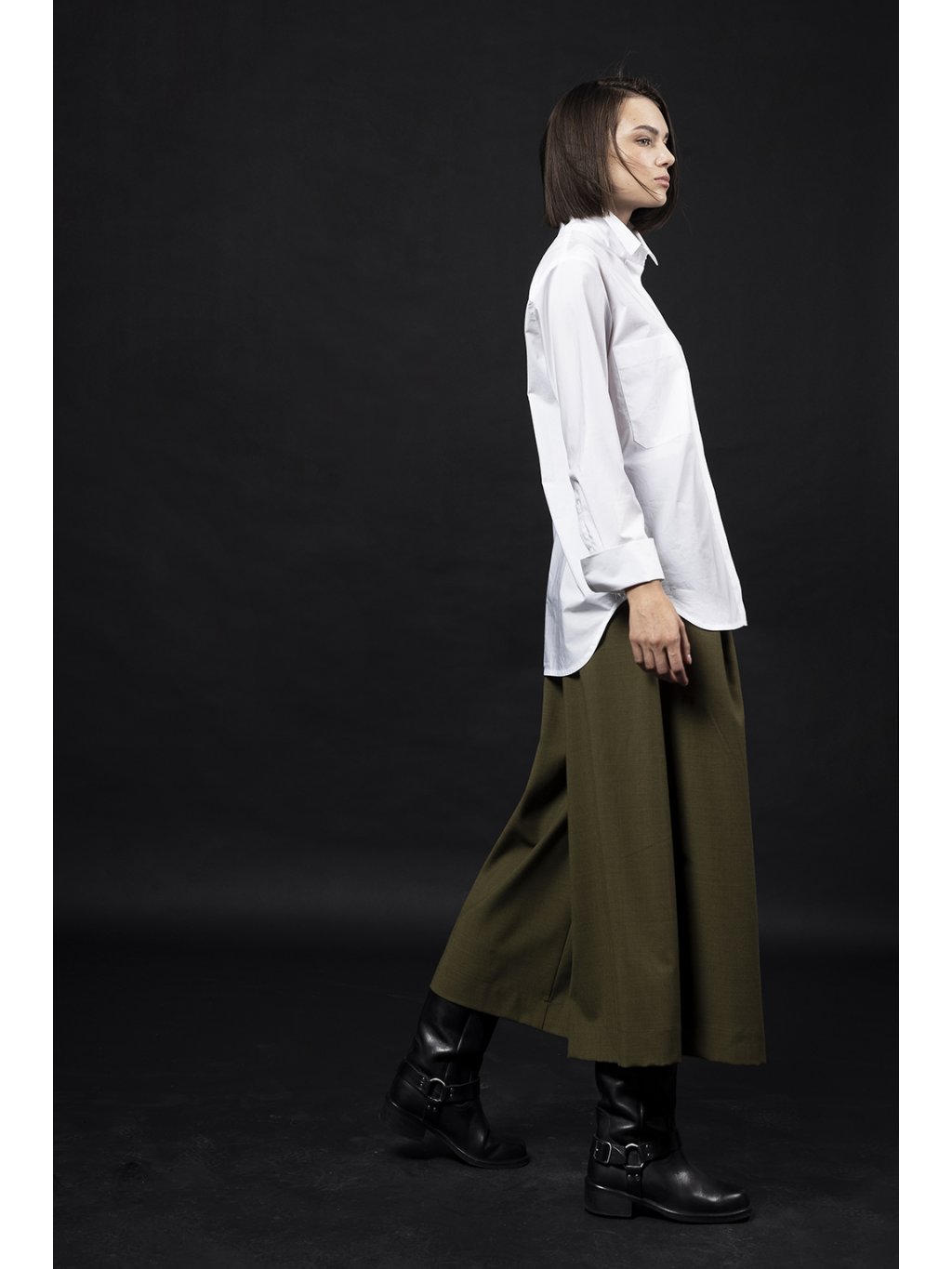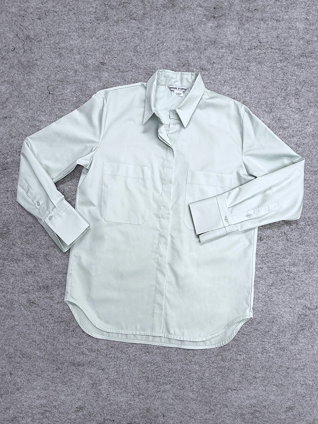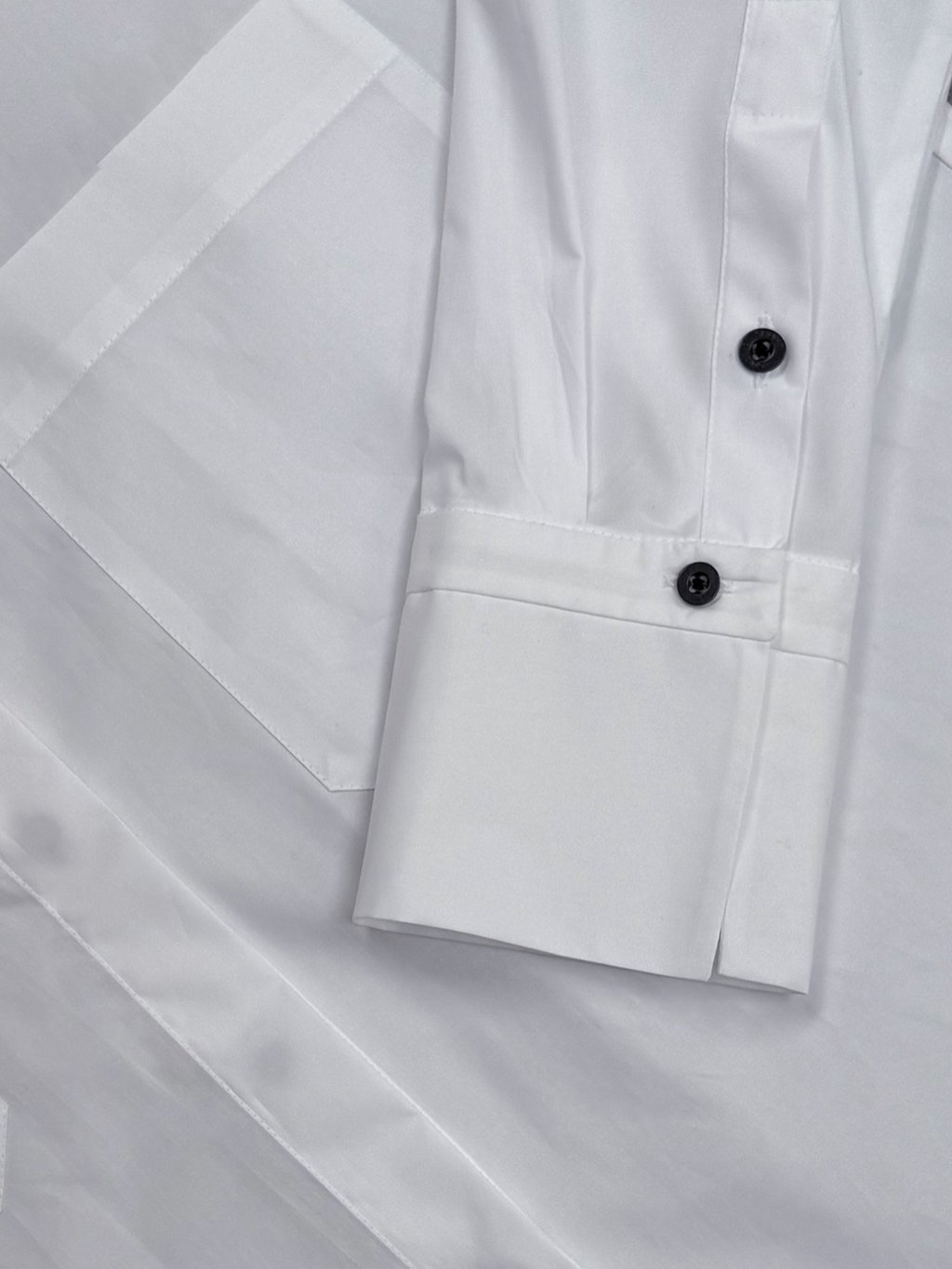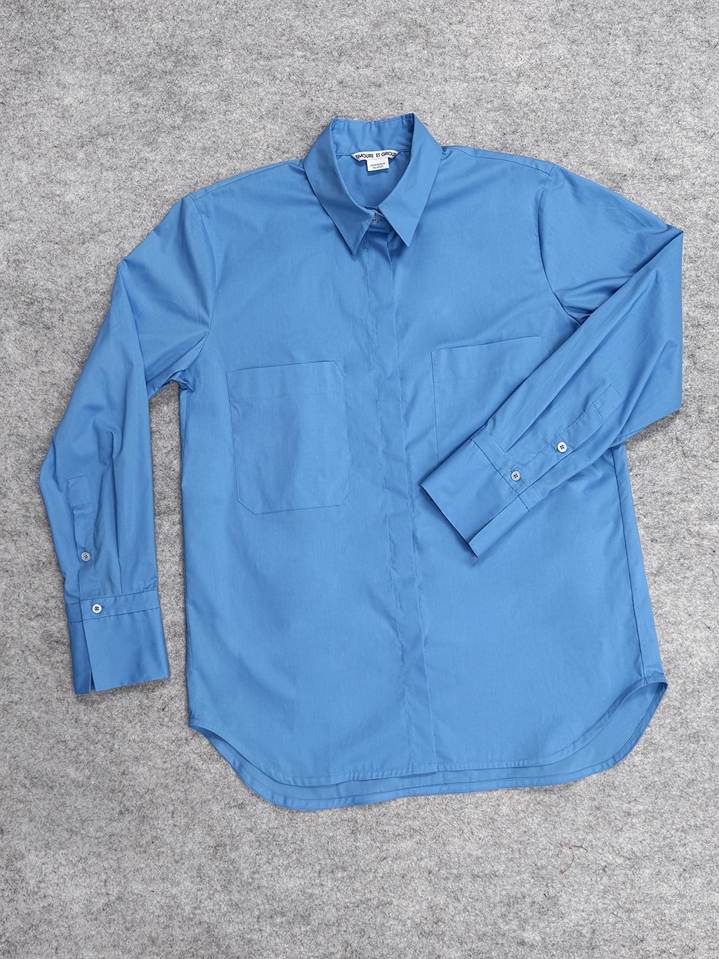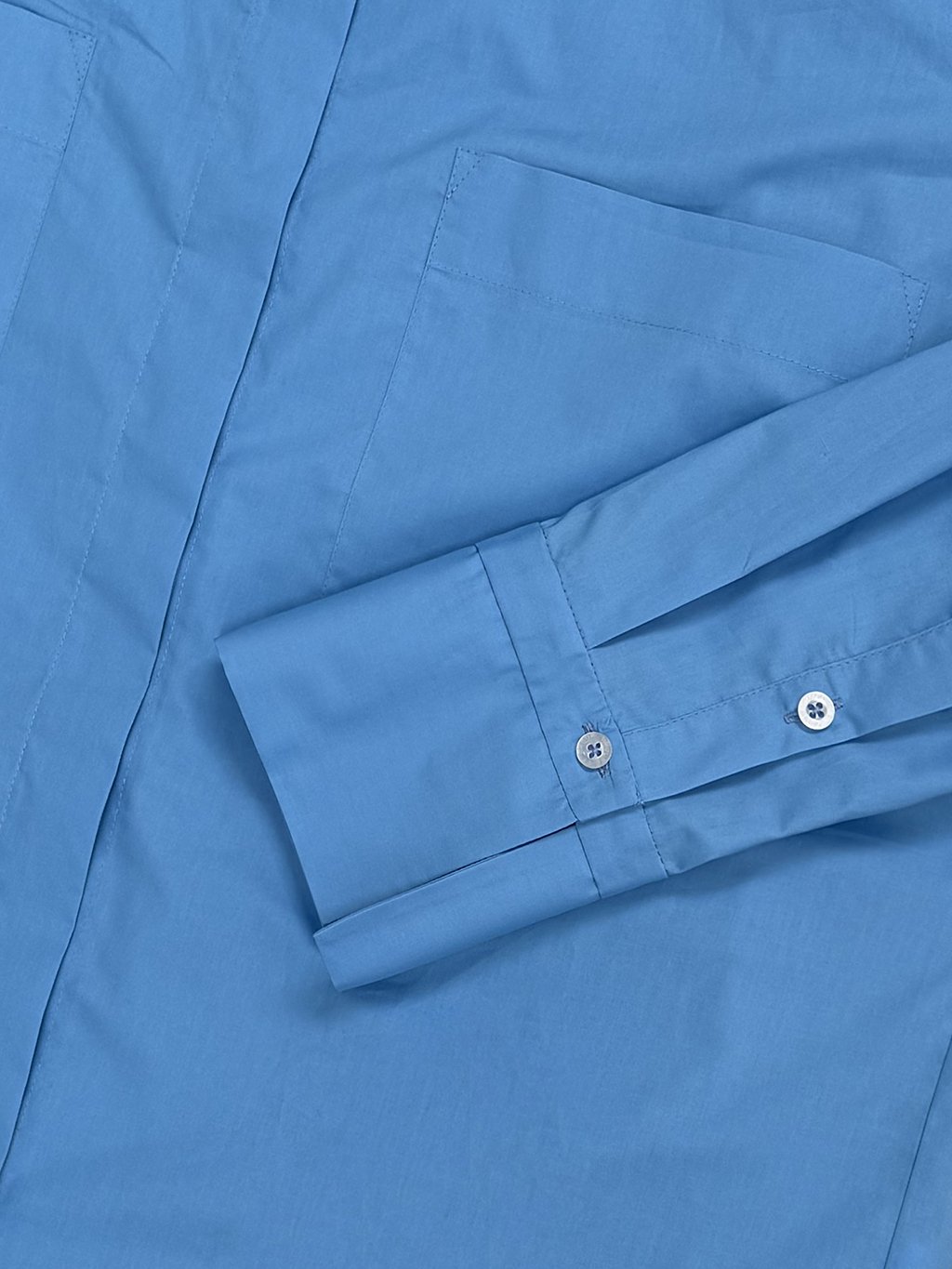 Klasická košile s tvarovanou délkou má dlouhý rukáv s vyšší manžetou a dvě velké kapsy.