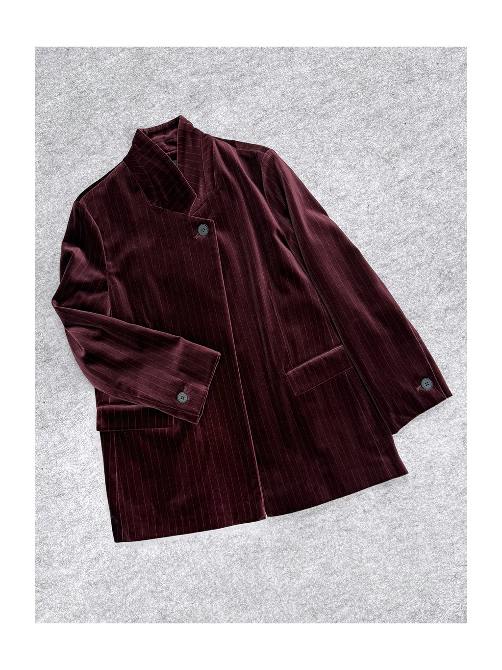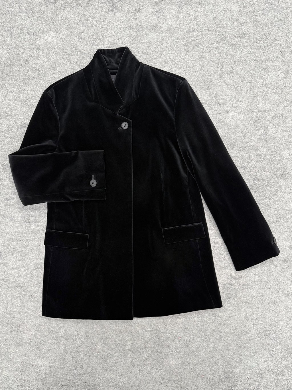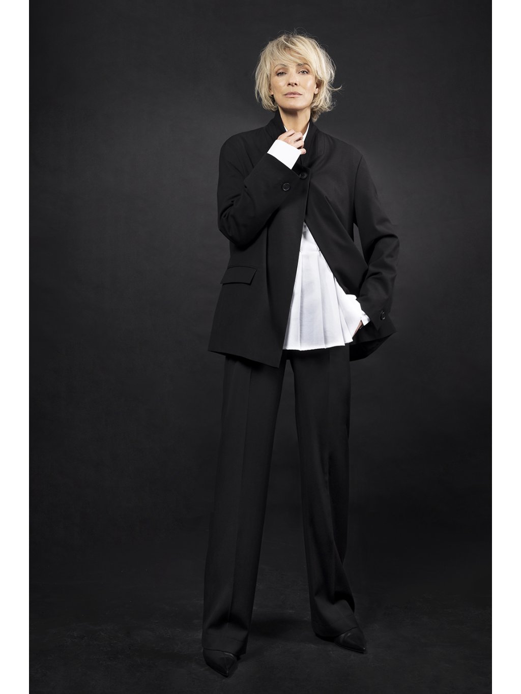 Sako s vyšším stojákem v nové aktuální linii zapnuté na jeden knoflík.