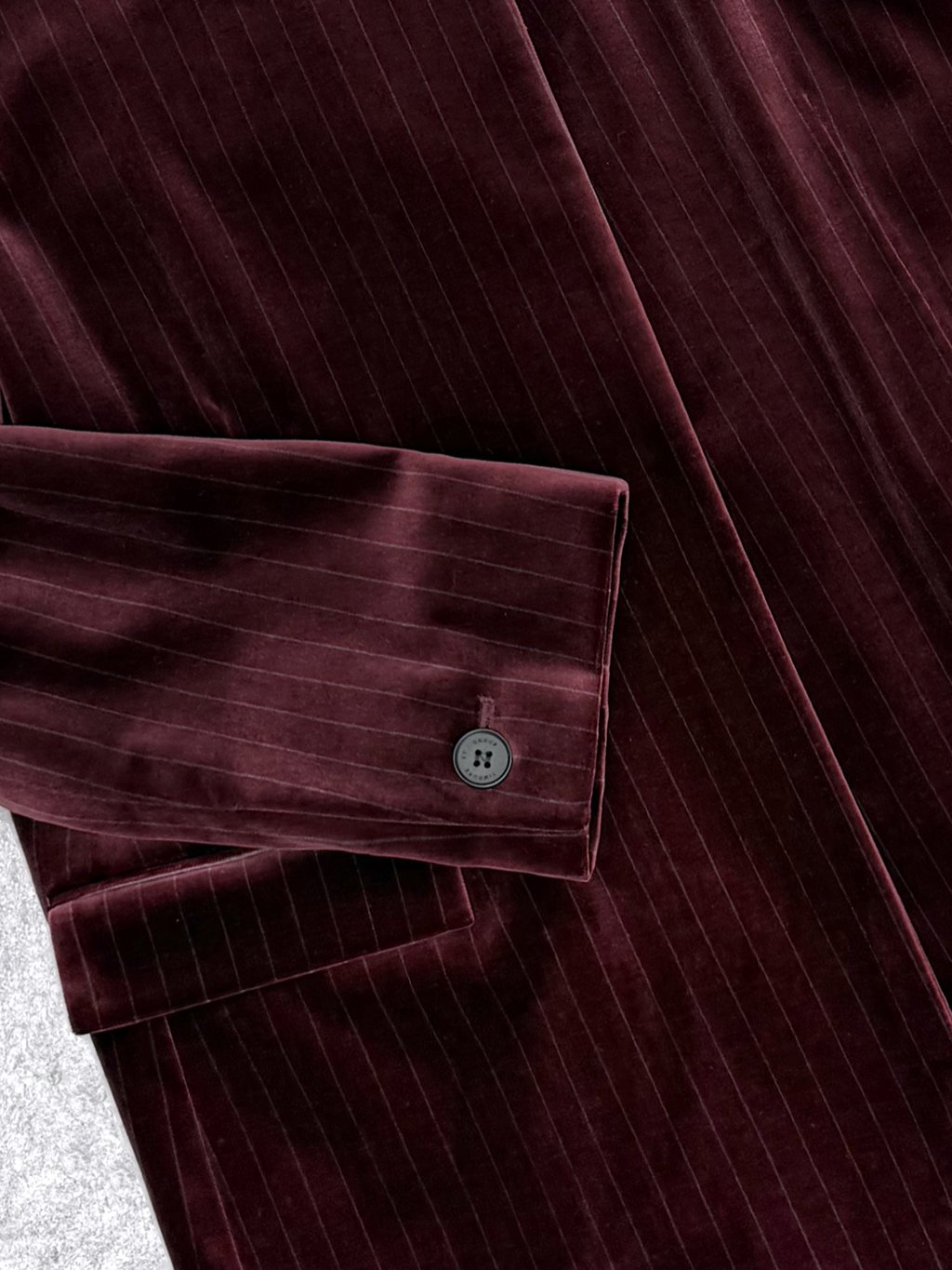 Složení:černá viskóza 63% polyester, 35% viskóza, 2% elastan; černý triacetát 100% acetát; bordó samet 100% bavlna; černý samet 100% bavlna
