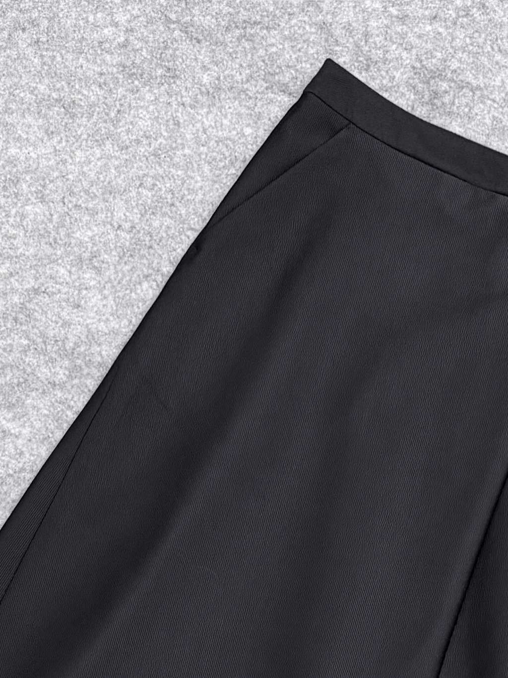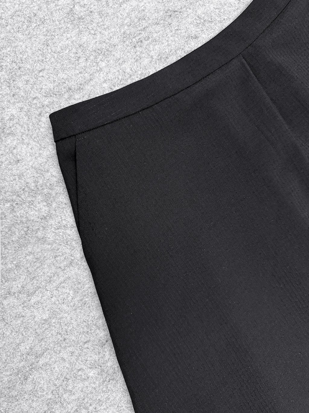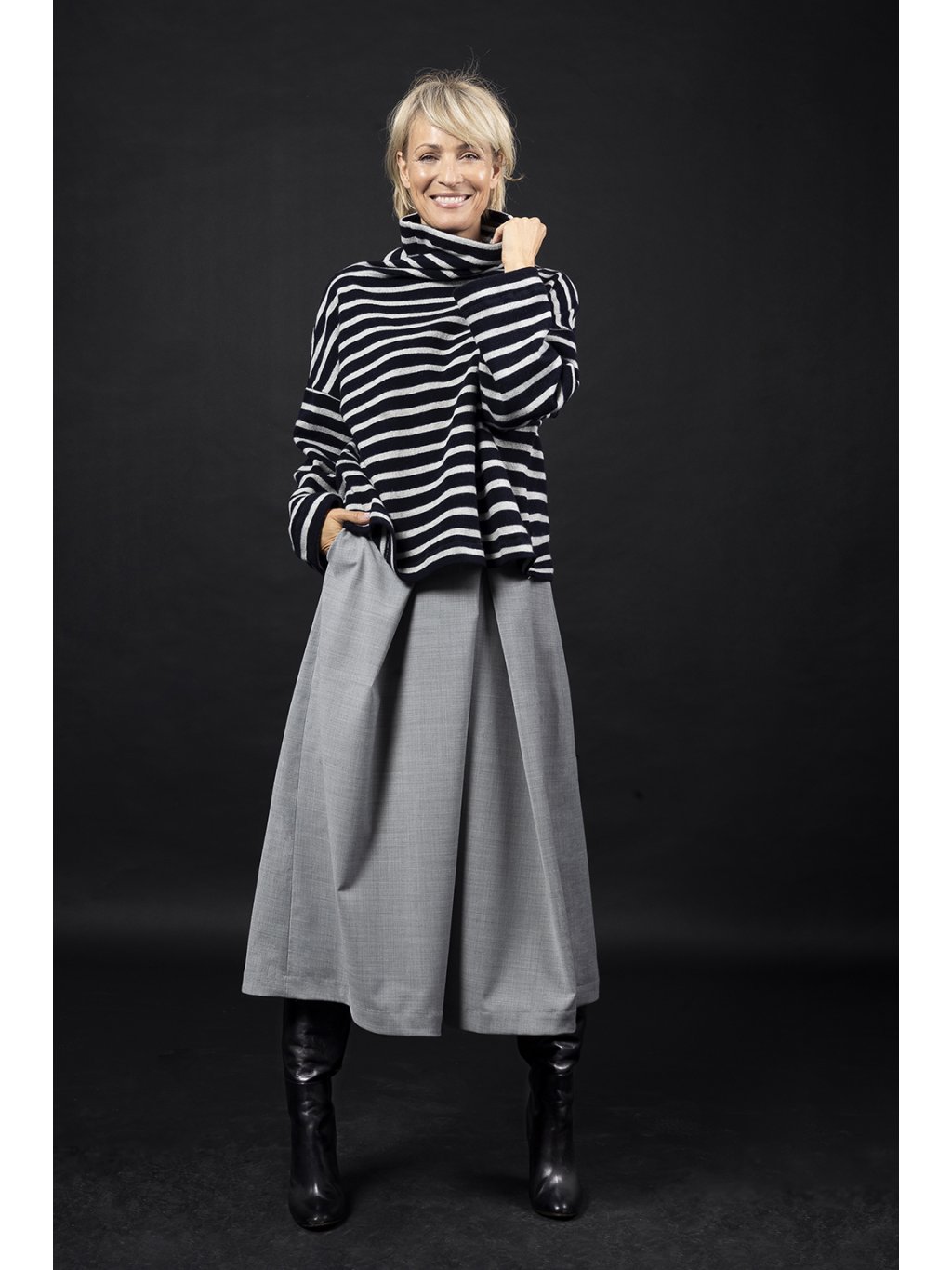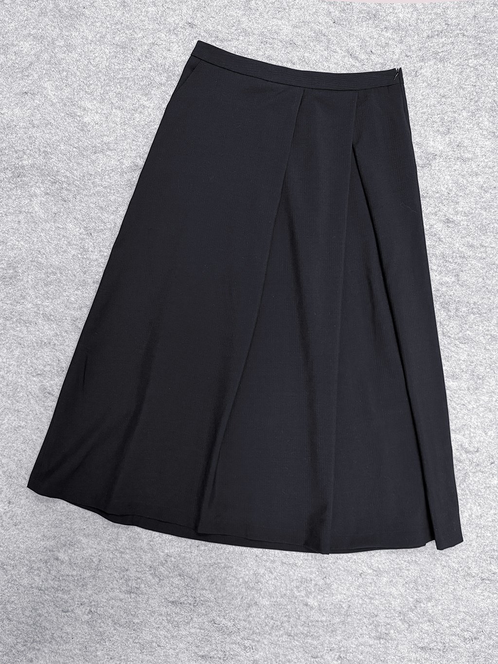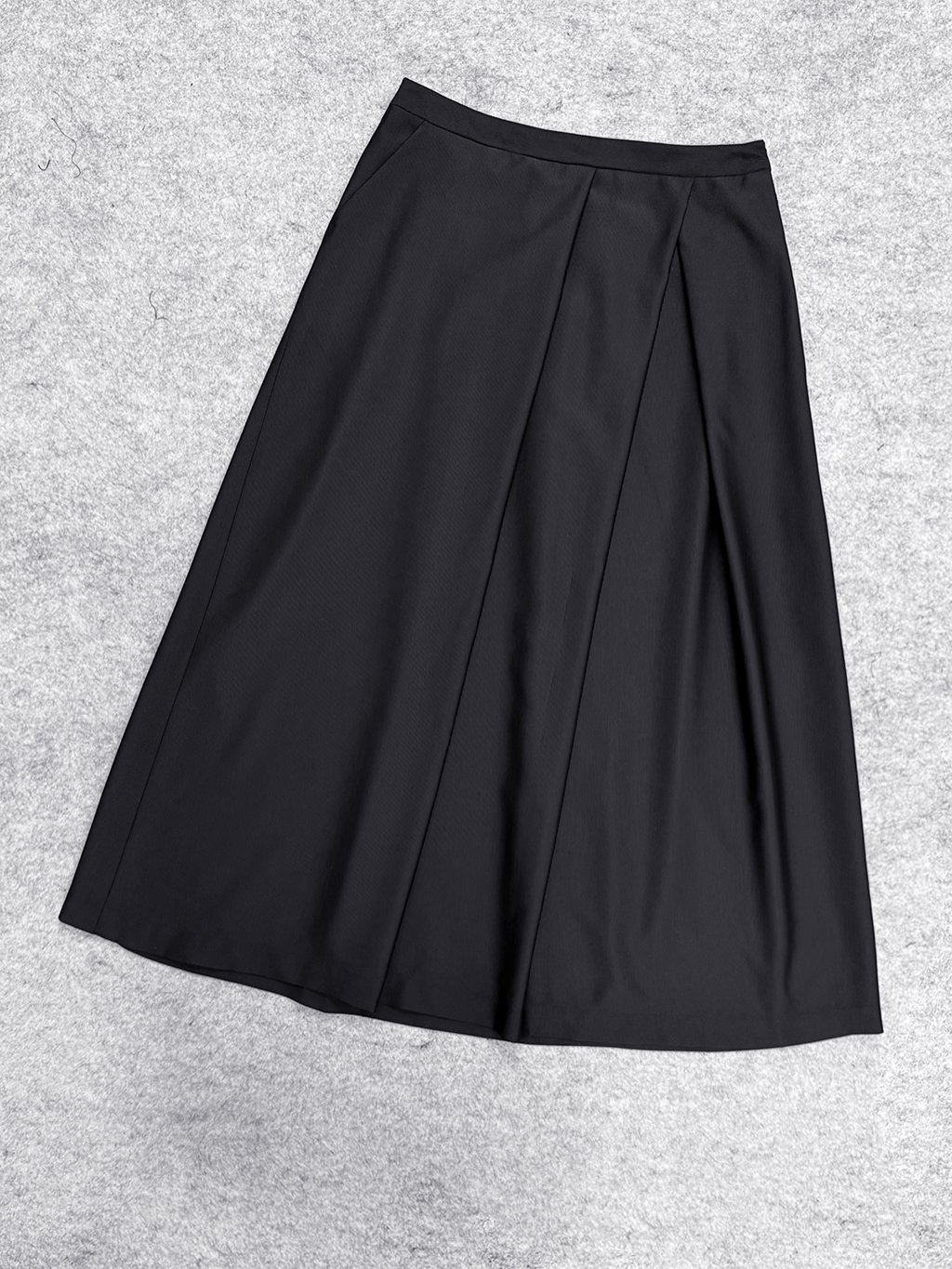 Sukně s asymetrickými sklady na předním i zadním dílu je z různých zajímavých materiálů.