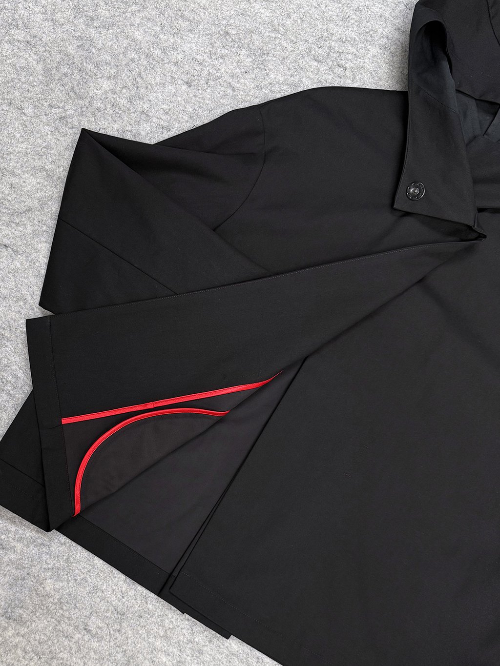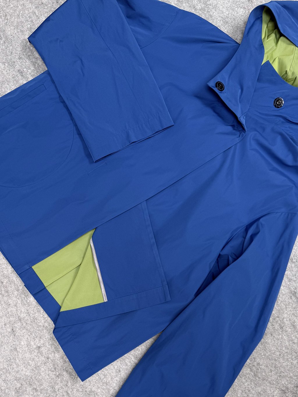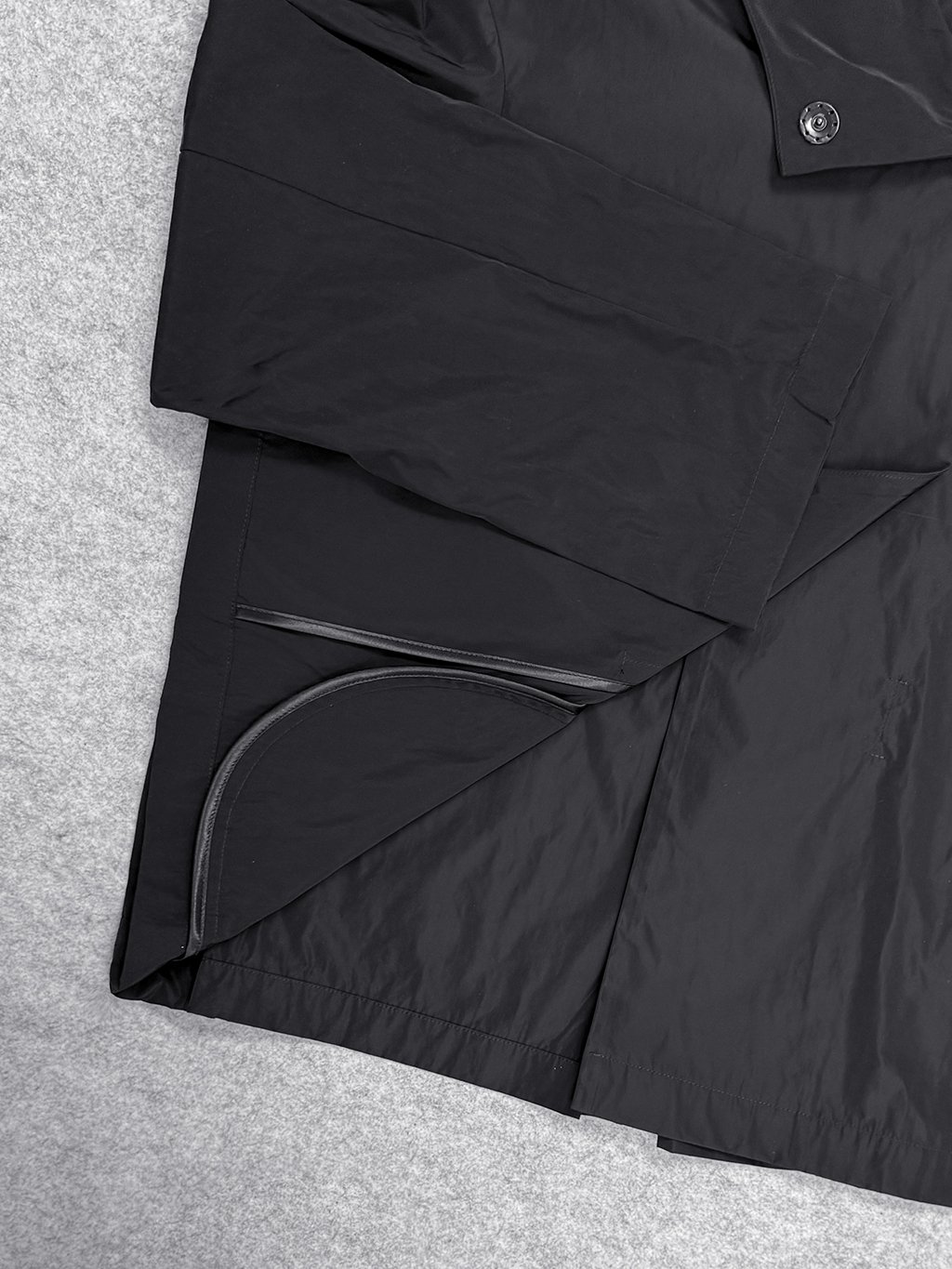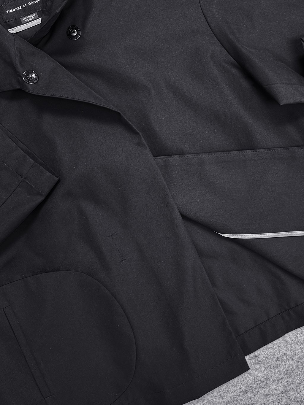 Bundička s kapucí ve zkrácené proporci je rozšířená hlubokým protizáhybem na zadním dílu a má zapínání na patenty.