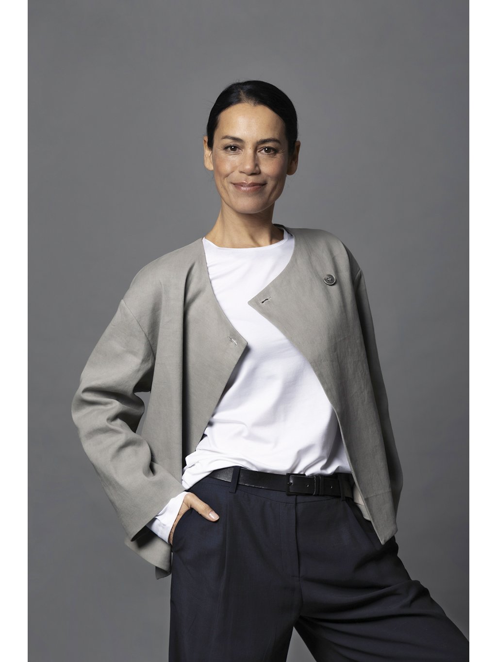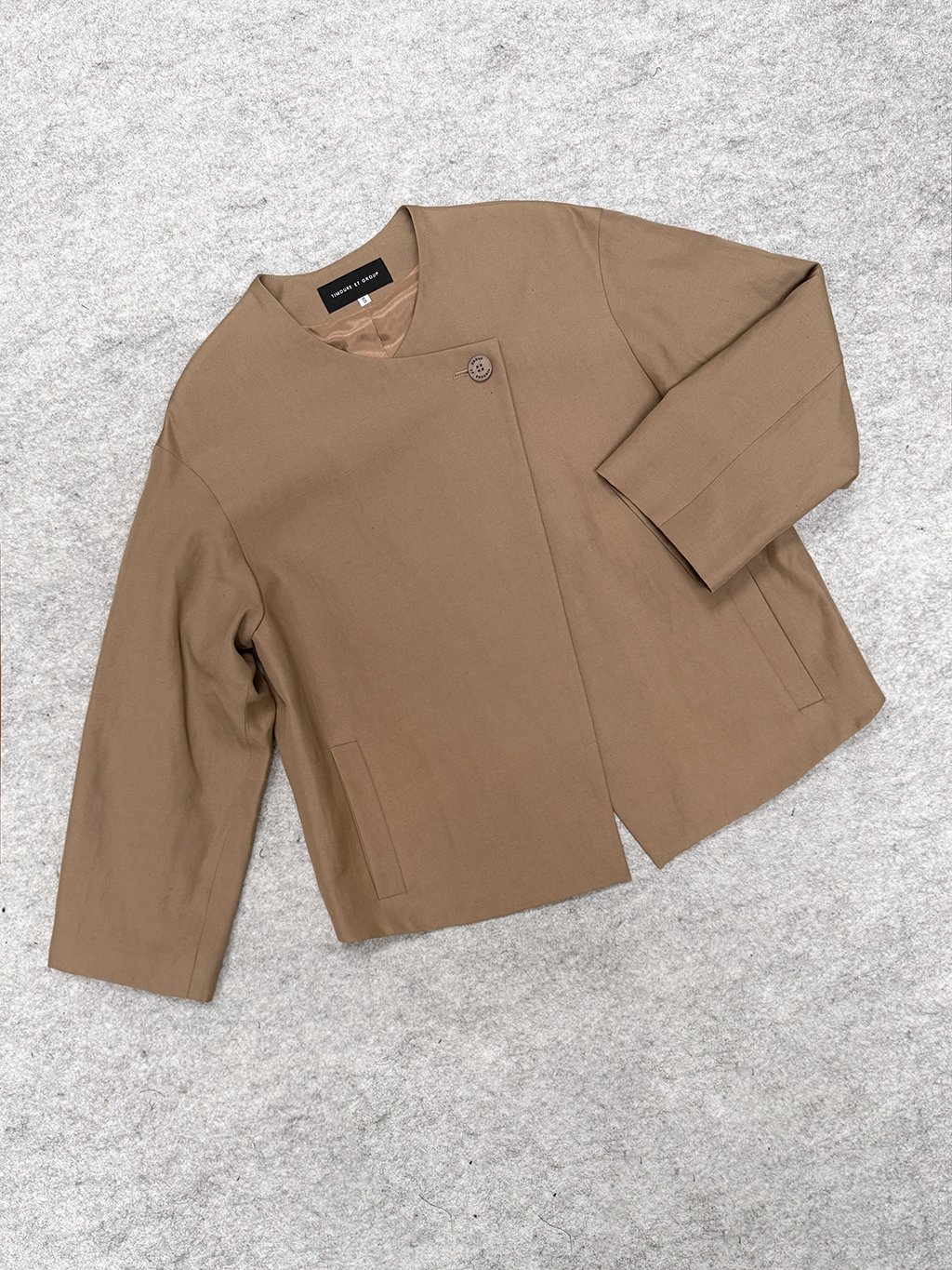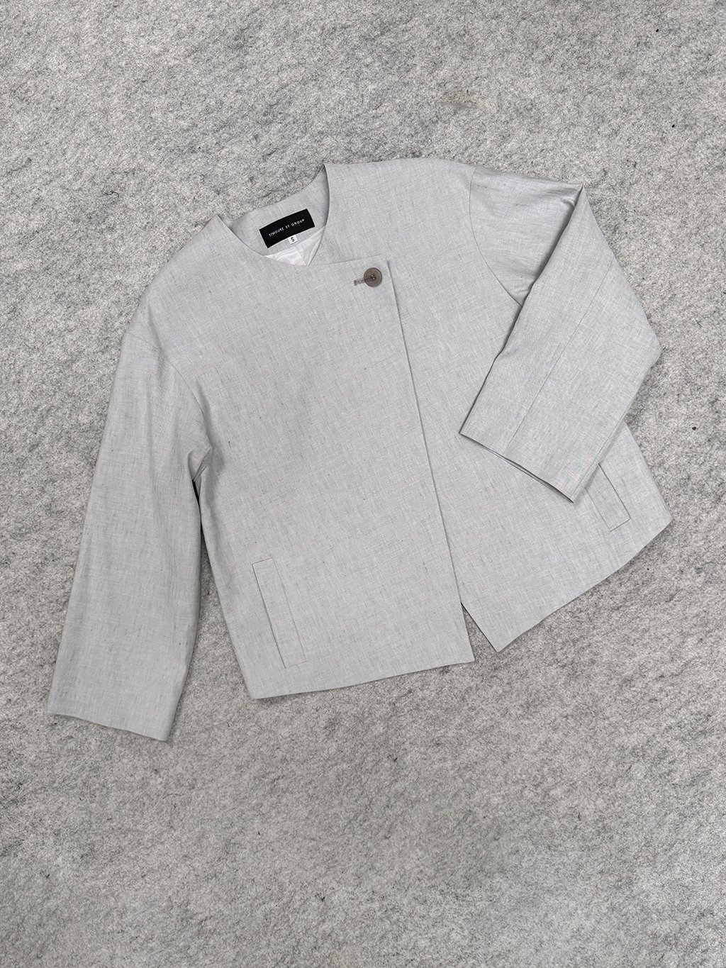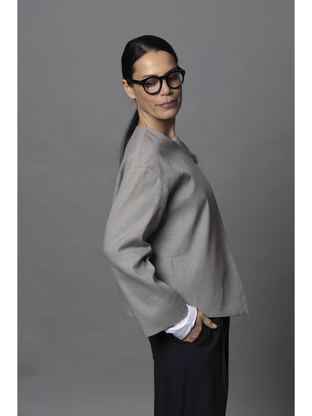 Netradiční kratší sako v japonském stylu je skvělý kousek pro kapsulový šatník.