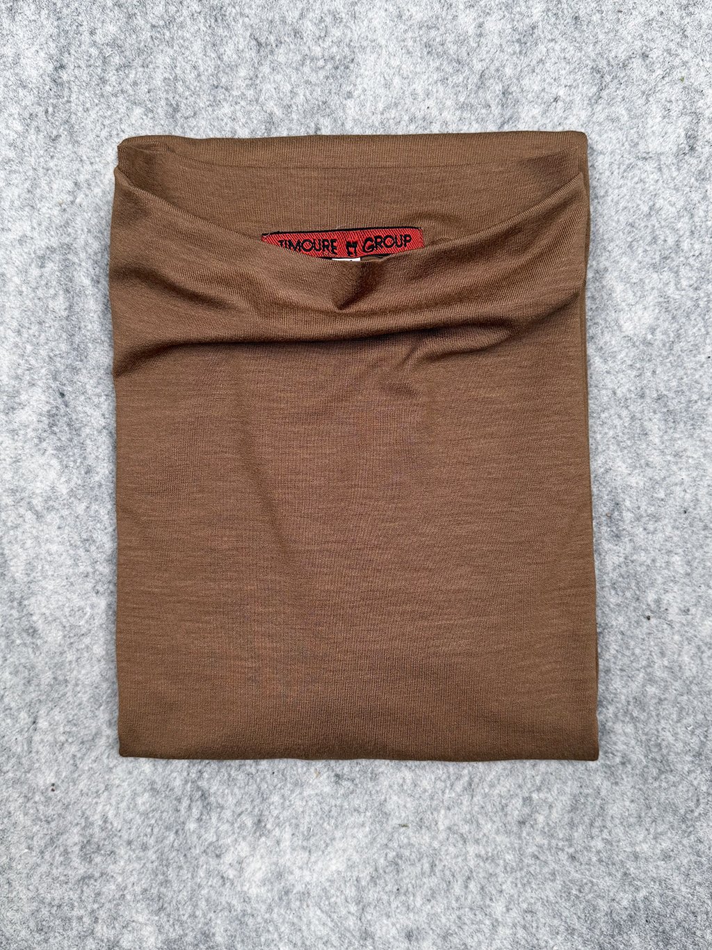 Tričko s přinechaným stojákem a tříčtvrtečním rukávem je mírně rozšířené.