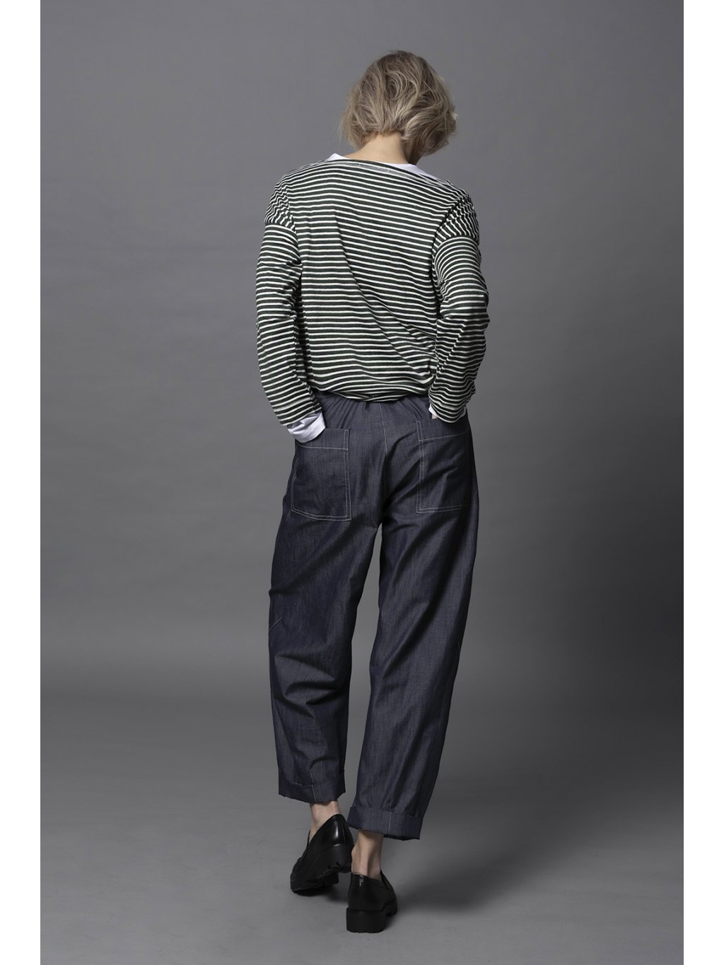 Zdánlivě klasické triko v nové proporci ve tvaru krabičky s lodičkovým výstřihem.